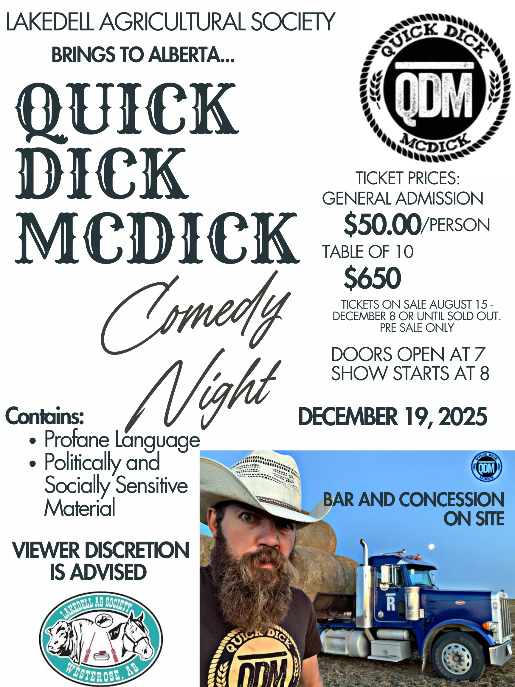 Hardcopy tickets will be available at ATB Westerose, Backstreet Antiques, Winfield Feeds, Farmers Markets and through the Lakedell main office. The online tickets link will be posted August 15th.